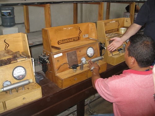 We then met Emilio, who supervises the rollers. Emilio demonstrated the duties of the bunchers and the rollers, explaining the exact details of each step. The completed cigars are then draw tested to ensure they meet specifications, and thus do not exhibit either too loose or too tight of a draw. Let me repeat... Every individual stick is draw tested!